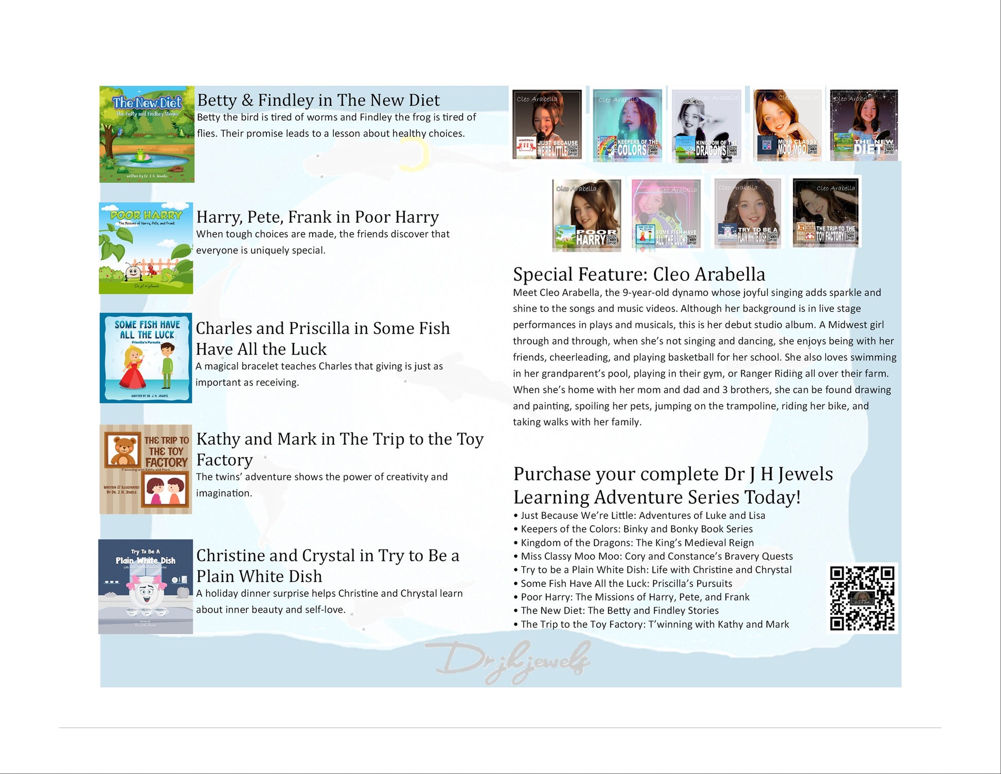 Dr J H Jewels' Learning Adventures Series is where stories, songs, and activities help kids grow in confidence, kindness, and creativity. In the Some Fish Have all The Luck Edition, Princess Priscilla's magical bracelet teaches Charles that giving is just as important as receiving.